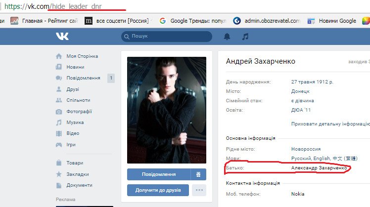 Судя по информации на странице Андрея Захарченко, живет он в Донецке и закончил Донбасскую юридическую академию. Однако реакции на обнародование этой информации в СМИ от главаря «ДНР» не последовало. Что может значит как ее правдивость, так и то, что некто просто развлекается и дразнит журналистов.